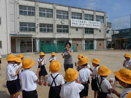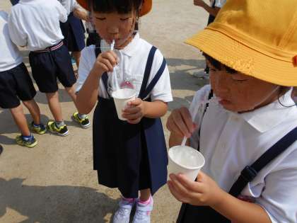 1年生が生活科の時間にシャボン玉をしました。