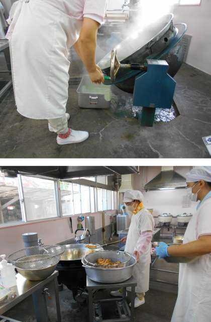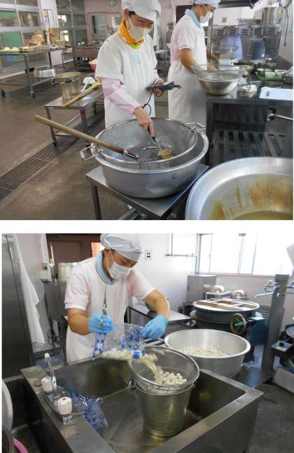 今日は給食室の調理作業に密着しました。
