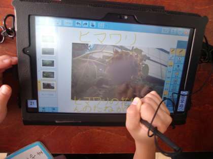 観察が終わると、タブレットでヒマワリの写真を撮って記録しました。