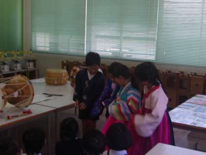 韓国朝鮮の民族衣装、チョゴリを着て「似合っている!」「かわいい!」と言い合っていました。