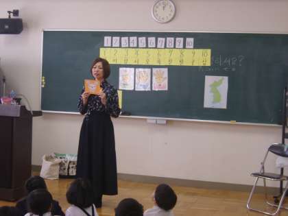 韓国語での挨拶やじゃんけん、1〜10までの数え方などについて教えていただきました。