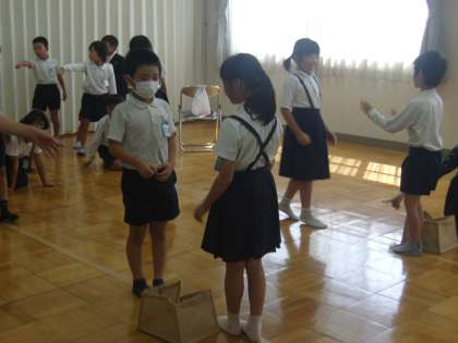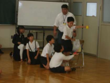 チームで分かれて韓国語でじゃんけんをし、勝ったらボールをもらうゲームをしました。