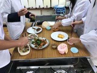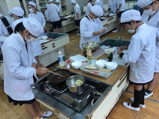 今回は、お弁当作りをしました。班でおかずを4品作りました。