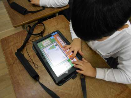 お絵描きのソフトを使って、名前を入れたり、スタンプで飾りをつけたりしました。
