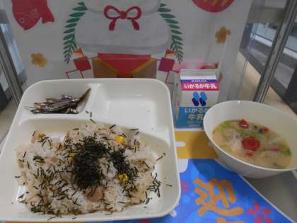 展示食のところは、調理員さんがお正月バージョンに飾りつけをしてくださり、
