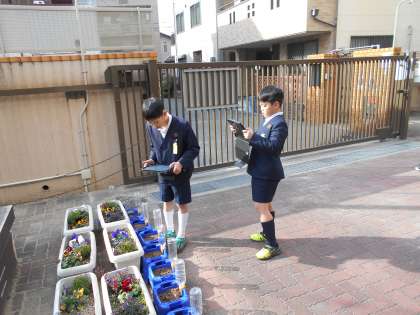 今日は冬の記録するために、タブレットを持って校庭や学習園に春や夏とはずいぶん違った様子を撮影しに行きました。