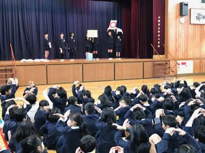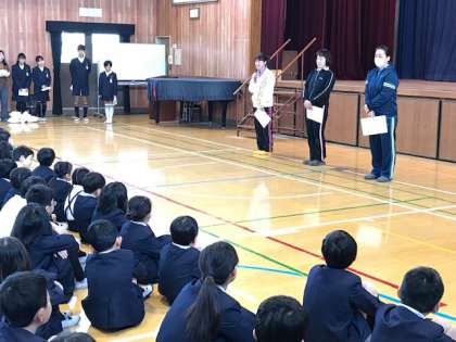 その中で、給食にかかわるクイズをしたり、給食調理員さんに感謝状を渡したりしました。