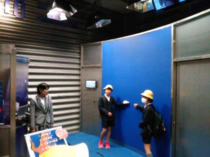 気象予報士やキャスター体験をしたり、番組の説明を受けたりしました。
