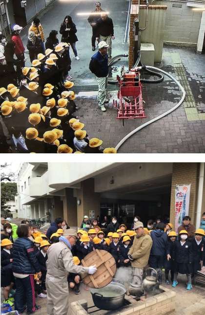 地域・消防署・区役所の協力をいただき、地域合同防災訓練を行いました。