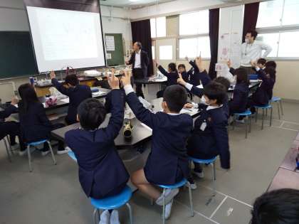 10日、三菱電機株式会社の方が、理科特別授業に来てくださいました。電磁石のはたらきについてスライドや実際の電磁石を用いてとても分かりやすく教えてくださいました。子どもたちは、「わ〜!!」「すごい!!」など驚きの声を何度も挙げていました。とてもよい1時間になりました。