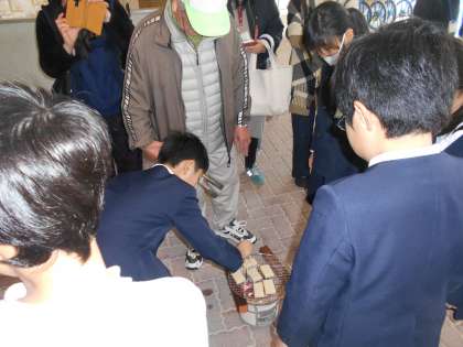 今日は地域の皆さんと一緒に、七輪を使ってお餅やきの体験をしました。