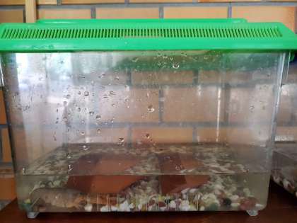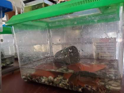 新3年生から新2年生に3匹のザリガニを引き継ぎました。
