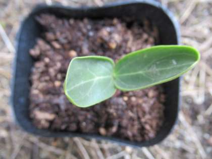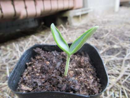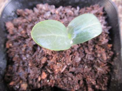1まい目がヘチマの子葉、2・3まい目がヒョウタンの子葉です。