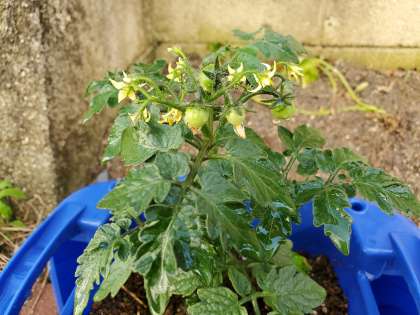 学校で植えたトマトは、小さな実がいくつかなってきました。