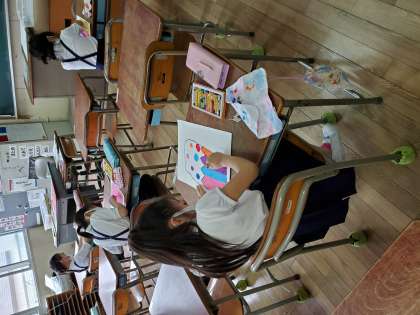 どの子も真剣に取り組んでいます。次回は、たまごから飛び出すお話を描いていきます。どんなお話が飛び出すか楽しみです!