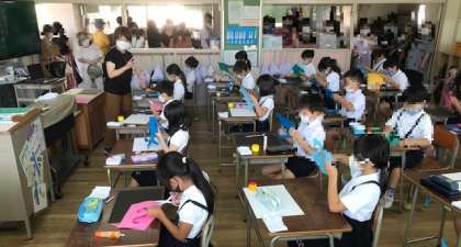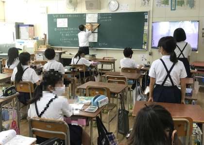 本日は、1年生算数科「かずしらべ」、3年生図工科「○○おばけ、見つけた!」、6年生算数科「立体の体積」の2コースに分けての学習を参観いただきました。