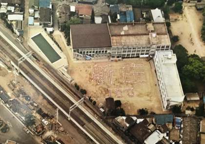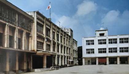 下の写真からは、プールと講堂が分かれて学校にあったことが分かります。