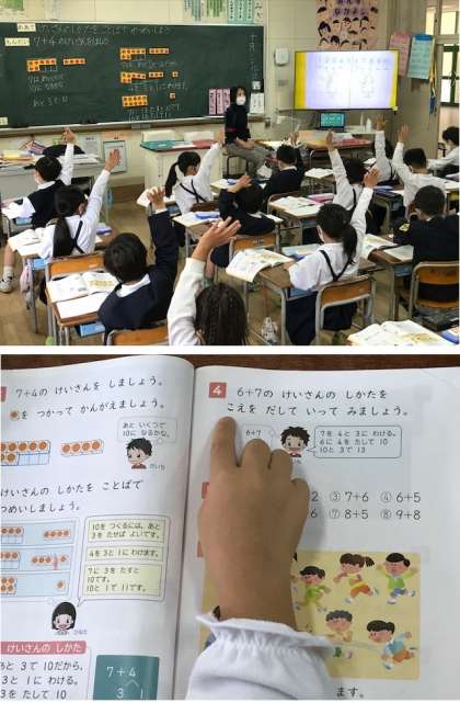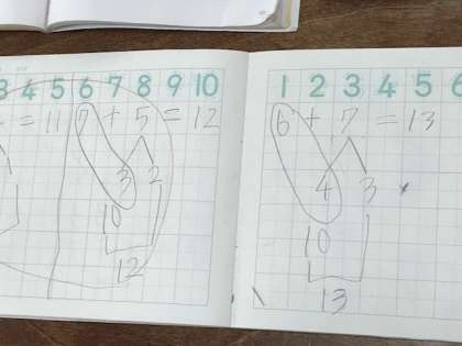 ブロックを使って考えたり、96ページのようにノートに書いて考えたりして、繰り上がりの計算が得意になってきました。