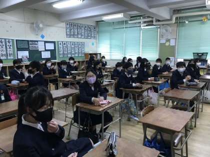 午前中、2時間の授業を行った後、新東淀中学校の制服採寸を行います。