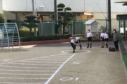 今年度の指標として、全国体力・運動能力、運動習慣等調査で、特に本校の課題であるソフトボール投げの調査を3学期にも再度実施しています。