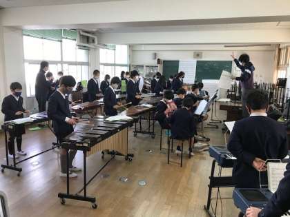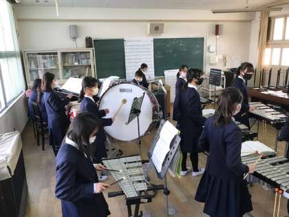 2月22日の卒業を祝う会で発表する予定です。テンポよく、強弱をつけてメリハリのある演奏ができるようにと、子ども達は一生懸命練習に取り組んでいます。