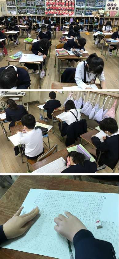 朝の学習時間「新庄っ子 国語プリント」に取り組んでいる子どもたちの様子です。