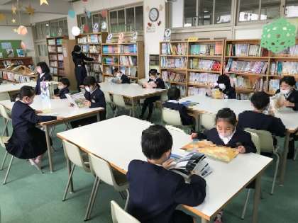 子どもたちは、図書室で「もう1冊借りる券」を有効に使って読書を楽しんでいます。