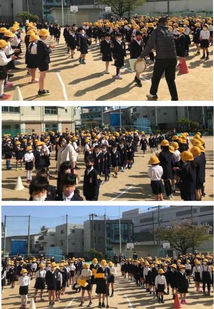 クラスごとに並んだ1年生が在校生の前を通った後、整列して式が始まりました。