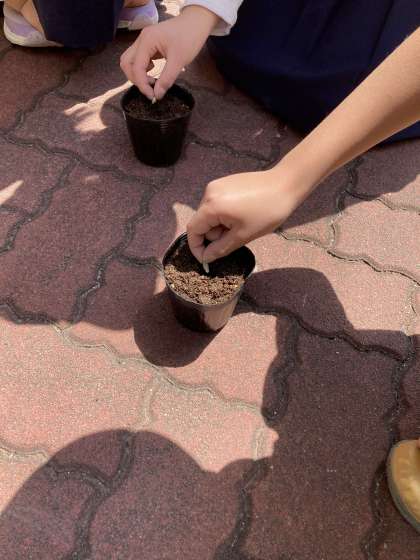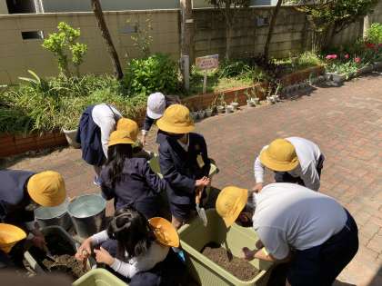 学習園の整備をして、ヘチマとヒョウタンのたね植えをしました。