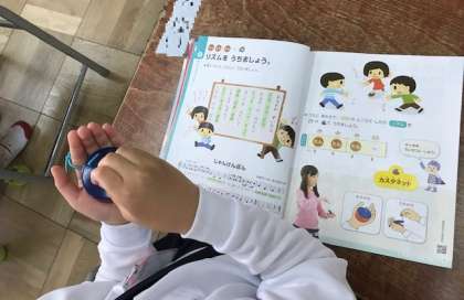 カスタネットを使ったリズムうちの学習の様子です。