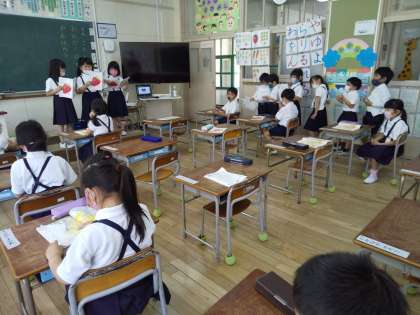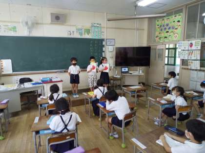 国語科「とんこととん」では、学習のまとめとして音読発表会を行いました。ねずみやもぐらの役を担当している子の中には、全てセリフを覚えている子までいました。宿題の音読もきっと上手に頑張っていることと思います。
