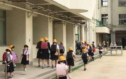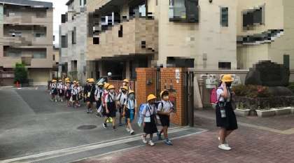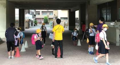 各ご家庭のご協力もあり、約束の集合時間に集まり、きちんと並んで子どもたちは登校しています。