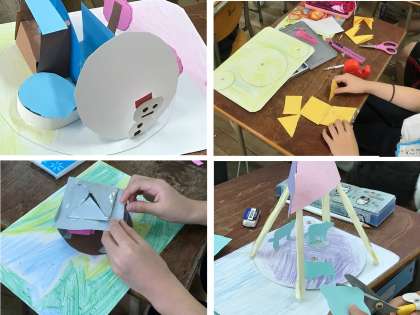 紙を組み合わせて、色を変えると場面が違った感じになって楽しいですね。