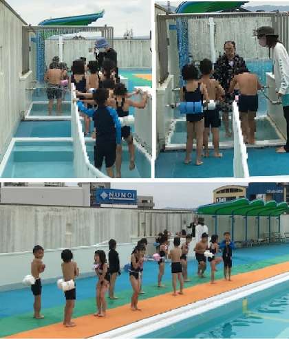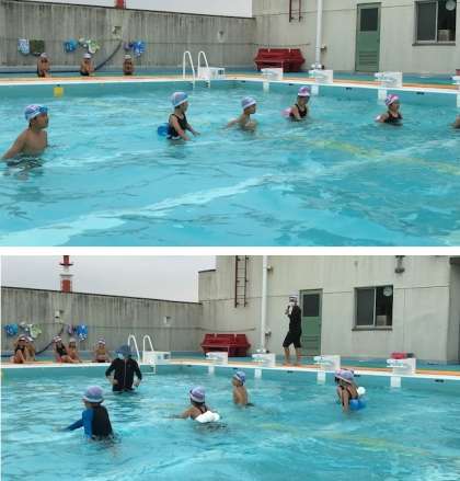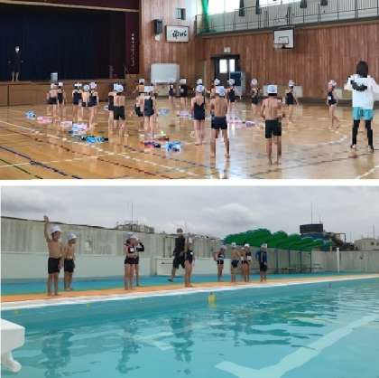 1年生は今年初めての水泳の授業。2年生は、昨年度水泳の授業ができなかったため、小学校で初めての取り組みとなりました。