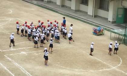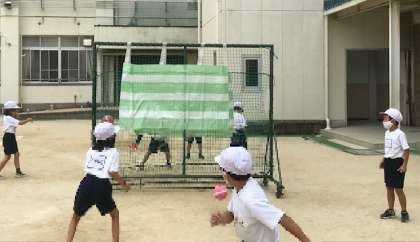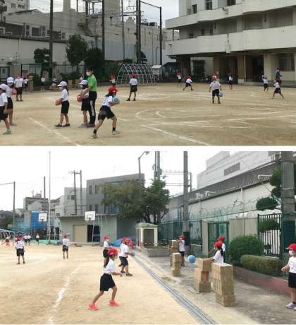 各学年、運動場で走ったり、ボール運動をしたりと、様々な取り組みを行っています。