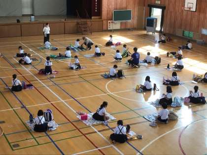 お弁当は、講堂でシートを敷いて、遠足気分でいただきました。