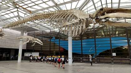 大きなザトウクジラの標本に迎えられました。