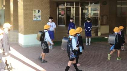 まず、朝は玄関で、児童の皆さんと「おはようございます」から1日が始まります。