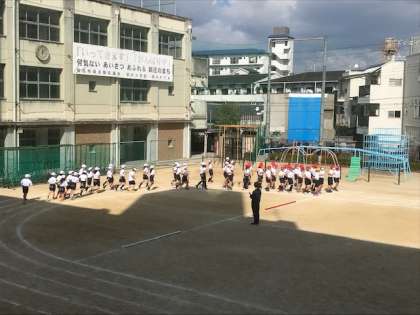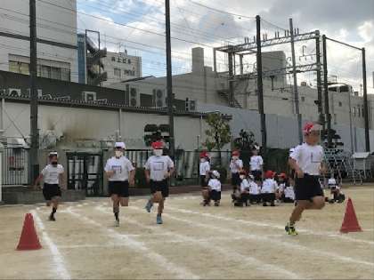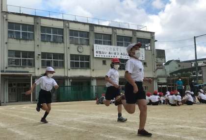 3年生は、「徒競走」に「台風の目」の練習をしていました。