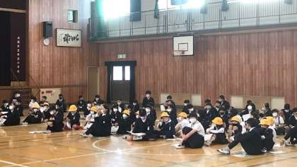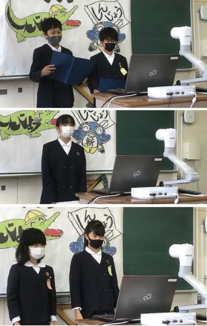 各教室がリモートでつながり、代表委員会の児童の皆さんによって、放送によるオープニング、初めの言葉やつどいの説明が行われ、楽しみにしていた「冬のつどい」が始まりました。