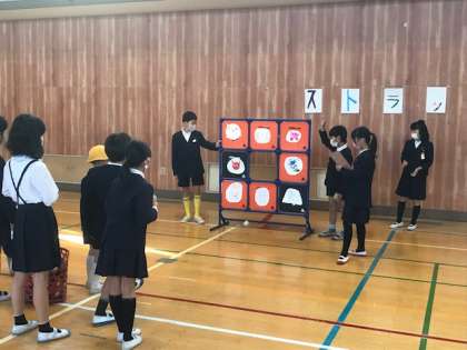 的にボールを当てます。怒っている顔に当ててしまって、減点になったお友だちもいました。これも、難しいけれど、楽しかったです。