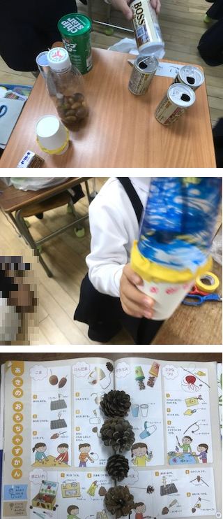 秋の自然を感じる「おもちゃ」づくりの授業です。