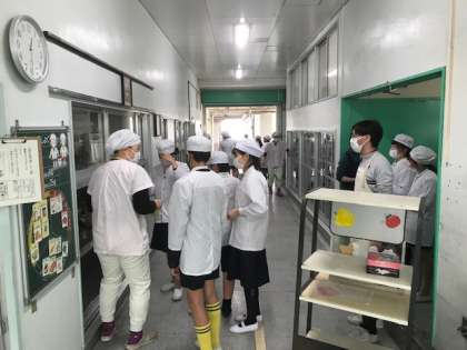 給食調理員さんに作っていただく、新庄小学校で最後の給食になりました。