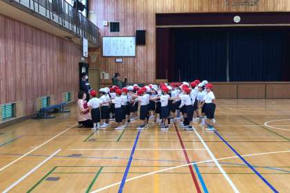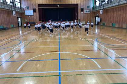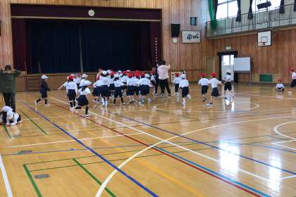 先生の指示で集合して、すぐ整列する動きを練習しました。