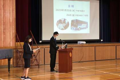 5月下旬に実施予定の、保護者の皆様への修学旅行説明会を行いました。