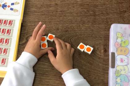 5つのおはじきを、いくつといくつにわけられるかを考えました。
