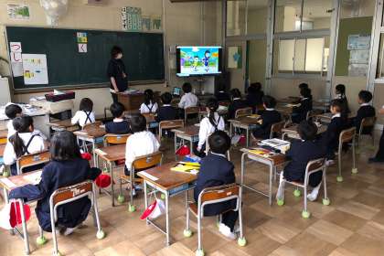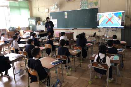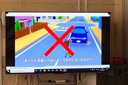 本日は、交通安全指導を予定していましたが、雨でしたので、教室でDVDを見て学習しました。