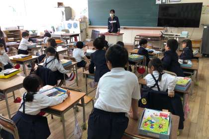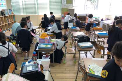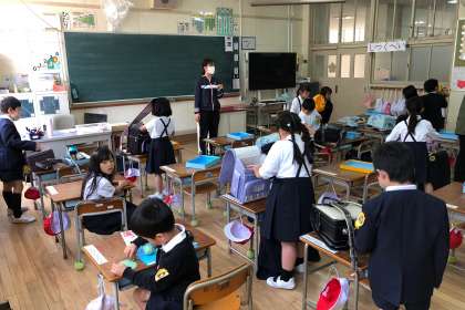 4時間目の音楽科の授業が終わって、帰る用意をしています。