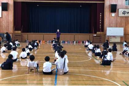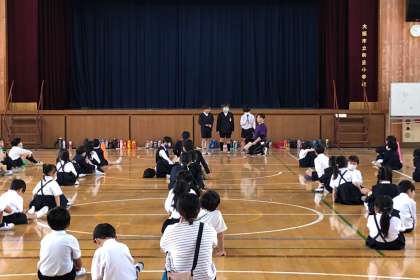 2年生が1年生を連れて、校内を案内して回りました。2年生は、少しお兄さんお姉さん気分で、しっかりと案内をしていました。