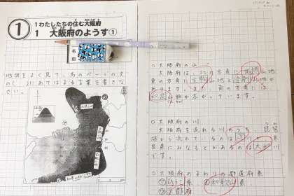 テスト前学習と、地図帳で地名を探す方法を教えていただきました。